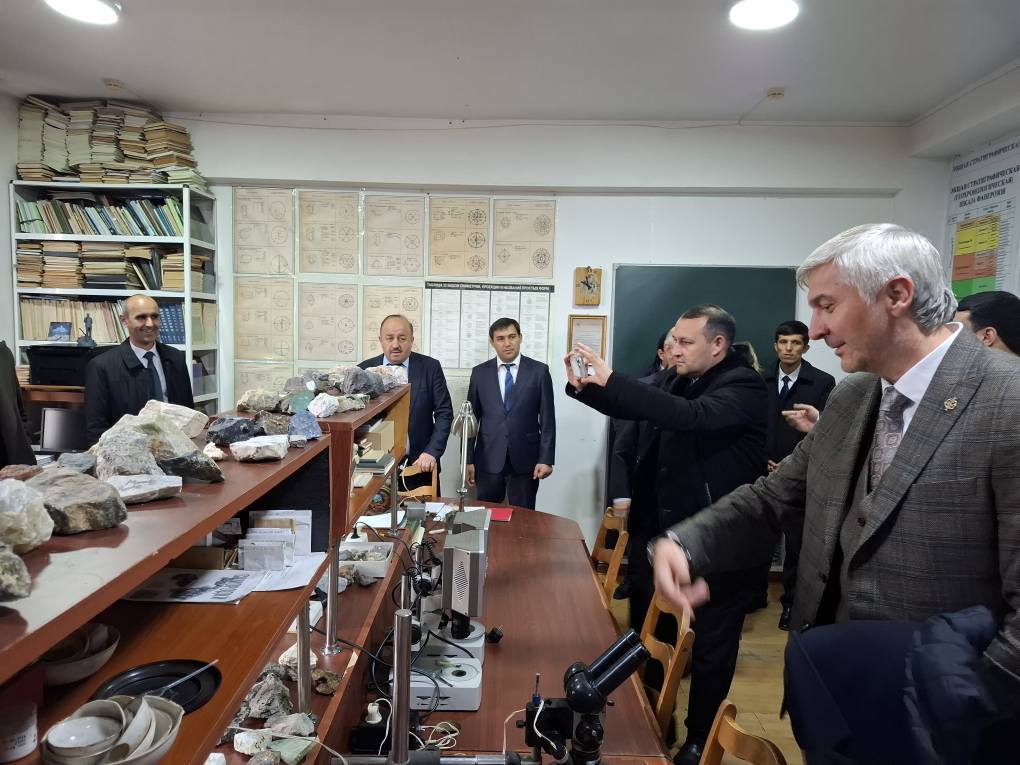 04.12.2025 совместно с руководством университета и экспертной комиссией международной аккредитации они посетили лабораторию минералогии и петрографии и минералогический музей геологического факультета Таджикского национального университета.