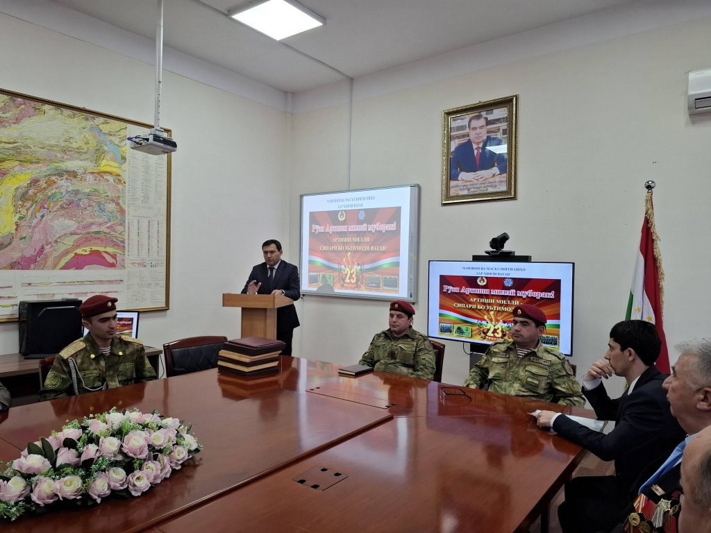 Он як навъ мактаби бузурги ҷавонмардию шуҷоат, далериву садоқат ва исботи муҳаббату самимият ба Модар-Ватани азизи худ мебошад. Ин ҳама эҳсосро бошад, мо насли рӯзгордида ва таҷрибаи ҳаётдида бояд дар дили ҷавонон бедор намоем.Ҳамчунин гуфта шуд, ки артиши миллии Ҷумҳурии Тоҷикистонро бидуни Сарфармондеҳи олии Қувваҳои мусаллаҳи Ҷумҳурии Тоҷикистон, Сипаҳсолор Эмомалӣ Раҳмон, Асосгузори Артиши миллӣ тасаввур намудан ғайриимкон аст. Зеро Қувваҳои Мусаллаҳ маҳсули заҳматҳо ва талошҳои таърихӣ ва самараи пурифтихори Мактаби давлатдории Президенти Ҷумҳурии Тоҷикистон муҳтарам Эмомалӣ Раҳмон мебошад.