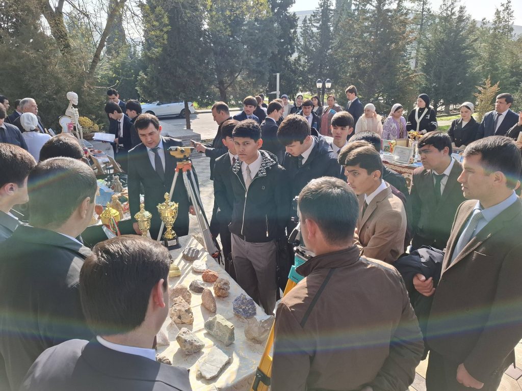 Баъдан довталабон аз намоишгоҳи ДМТ, ки аз дастовардҳои илмию таълимии устодону кормандон ва донишҷӯёни факултетҳо иборат буд, боздид намуданд.Як гурӯҳ аз довталабон ба факултети геология ташриф оварда, аз дастовардҳои илмӣ, шароити мавҷудаи таҳсил инчунин аз озмоишгоҳҳо ва музейи геологии факултет дидан намуданд.